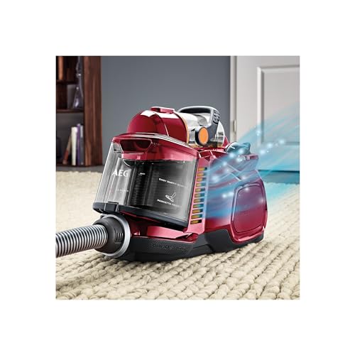 AEG LX7-2-CR-A Animal beutelloser Staubsauger(AAA-Energie-Label, 750 Watt, inkl. 3 Düsen, 9 m Aktionsradius, Softräder, 1,4 Liter Staubbehälter, waschbarer Hygiene Filter E12) Rot
