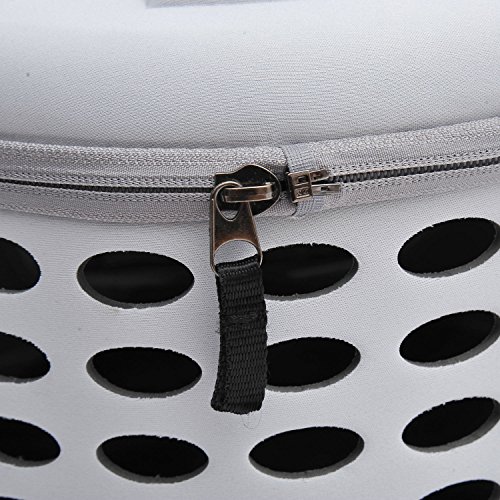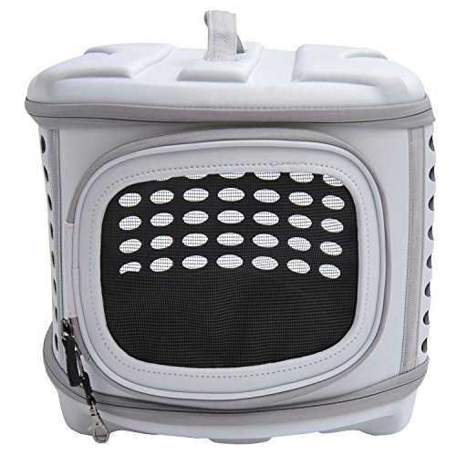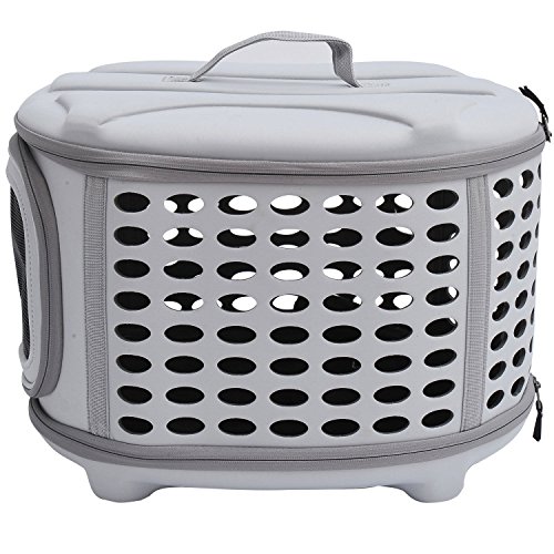 Praktische, robuste Transporttasche für kleine Hunde, Welpen, Katzen und andere Kleintiere. Beschreibung: · komfortable Transporttasche für kleine Haustiere · aus weichem und robustem EVA Stoff · kann bei Verschmutzung einfach mit einem feuchten Tuch abgewischt werden · das Material ist wasserabweisend · bei Bedarf kann die Tragetasche flach zusammengefaltet werden, durch die zusätzliche Fixierung mittels Reißverschluss ist sie bei Nichtgebrauch sehr platzsparend zu verstauen · Lüftungslöcher an allen vier Seiten · das Haustier kann sowohl von Oben als auch von der Seite bequem einsteigen · hoher Tragekomfort · mit integriertem Tragegriff · inklusive extra weicher Unterlage aus Polarfleece · herausnehmbares Polster, einfache Reinigung für optimale Hygiene Maße: · 46x37x31cm (LxBxH) Farbe: · lichtgrau